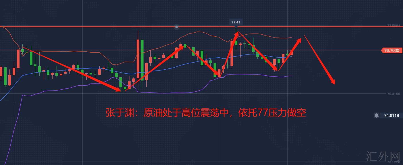 原油价格上周创下一个月迄今高峰到73.95美元每桶,因早期报告表明,奥密克戎毒株变种致使的病状程度较轻,且辉瑞口服药有助于提升原油价格;但周末承受流行病影响,多国大面积取消航班,加上因欧元兑美元圣诞节,确诊患者大幅增长,流行病的忧虑情绪回涨,原油需求下滑,原油价格承受流行病的影响存下探风险。总的来说,在多重有助于影响下,原油价格这周买方强势,但奥密克戎毒株在世界增速蔓延下,仍需维持小心,此外,伊核协商马上重返协商。原油昨天夜里是一个冲顶回调的行情,价格上涨至通道上沿造成迅速滞涨,又一次回调起涨点左右,4小时级别收出滞涨K线,形成了短时间的高点震荡,多空冲突也是异常的显著,早盘时段价格上涨至前期高位77.00一线不能击穿,又一次造成回调,从整体的结构向上瞧原油当前已经到了核心阻力区,所以不具备迅速上涨的条件,反而显现调动需求,依然需要高空!