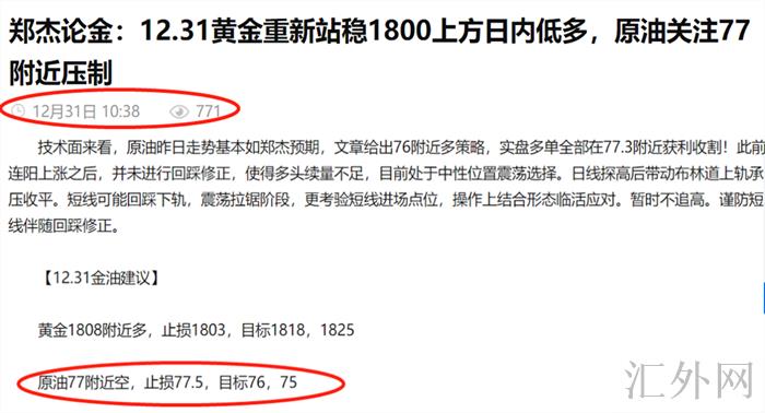 12.31黄金直接上升再攀高峰!原油77空单策略兑现实盘大赚
