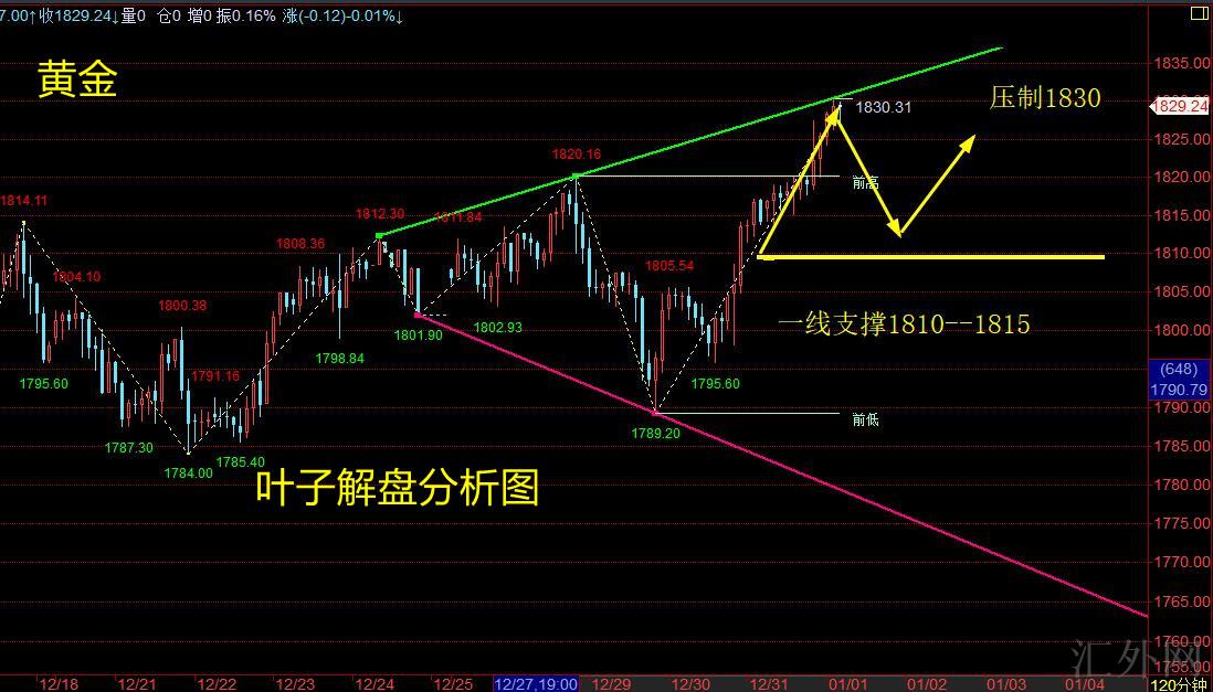 黄金不破1830一线买跌,止损1835,计划1810-1815一线;