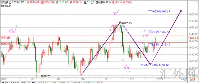 在2021的最后一天,黄金也是抓住了这个最后时刻,最终是击穿1815-20区域达到往上击穿。