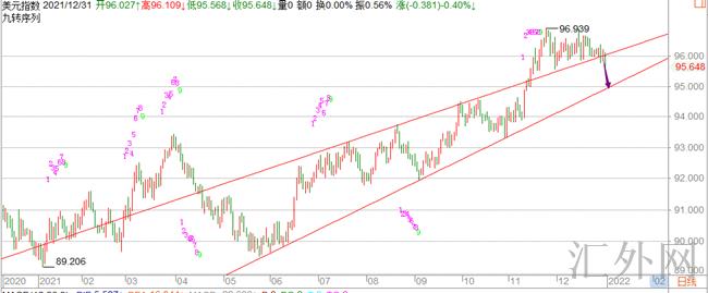 美元这里已经跌穿支撑,那么当前运行在此区间中,接下去有几率去刷新下面支撑95.0这里