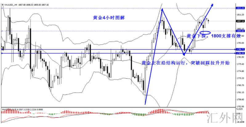 黄金回踩1810-1815一线不破买涨,止损1803,计划1820-1825一线;