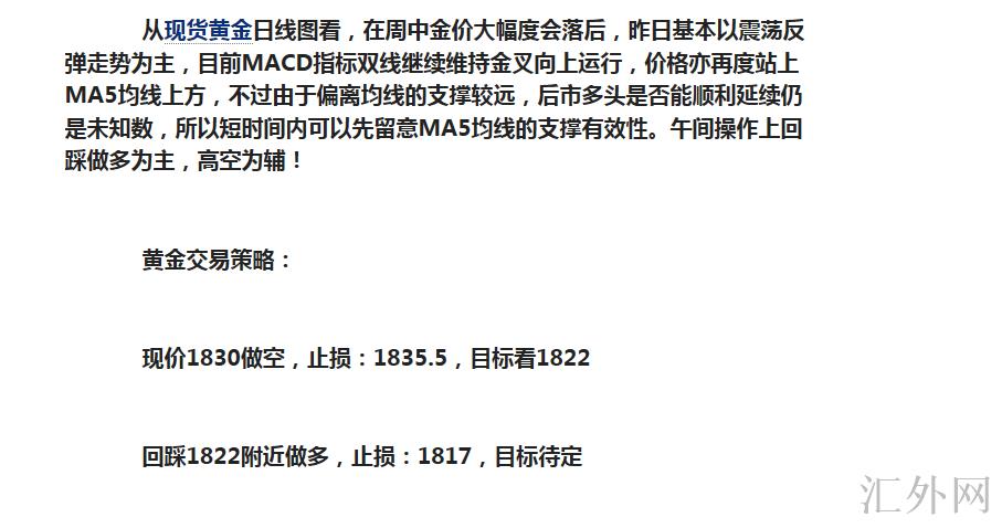 黄金行情上,受于奥密克戎变异毒株迅速传播,黄金承受避险支撑,黄金价格短时间震荡总体强劲。当前黄金价格以下支撑,关注日间低位1820美元左右,这也是上周黄金价格受避险助推摸底回涨前的高位位置,其次日K线5日移动均线1815美元左右,以及日K线10日移动均线1809美元左右。黄金价格上方压力,着重关注今年三季度黄金行情多次到达的高位位置1833美元左右,日间黄金价格临时在这里遭遇阻力。总的来说,黄金价格受避险支撑,短时间价格上升遭遇阻力,有一定调动态势,操作上推荐注意1833美元逢高布局短线空单,以下注意1820美元左右可以布局一次短线多单!