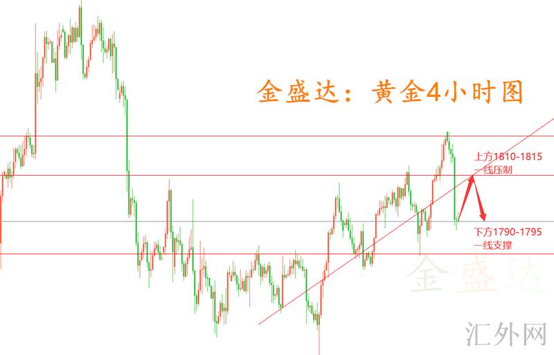 从黄金4小时图来说,节前两日黄金的上涨近乎变态,尽管回涨空间并没有是异常大,但表现出的接连不间断上升节奏着实让人匪夷所思。当前也因接连上升显现严重超买和顶部背离,今日行情或许会有适当的情绪延伸,行情显现回调的风险会异常大,对此必须要有所防范。综合来说,纵使节前黄金格外亢奋上升,但也莫要盲目积极,技术上以及将来美联储加息预计都不支持黄金此种偏激上升模式,而致使该种异变行情首要是情绪使然,伴随节后市场回到常态,黄金吐回上周格外回涨空间的风险还将加大,对此必须要防范,今日黄金短线交易参考上金盛达推荐高空为主,上方着重注意1815-1820一线压力,以下短时间着重注意1790-1795一线支撑。当前操作上具体以金盛达本人实时给出策略为准!手里有持仓的朋友可以及时与我沟通交流,金盛达为你供应许多操作方案!