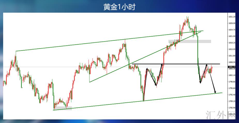 昨天技术分析给的就是两根趋势线高点回踩增速,既然当下达到了,还想在低位去复制上周的小横盘,那我就只有把回弹高点设设在07左右,由于上边已经没什么阻力位了,只有在这个短回弹位置持续看空,才或许会再次显现失守1800的情形,以前的反转点除了90左右发生过,85也有,在位置挨这么紧的前提下,你说今天是不是一个我们看空的可能呢?黄金真能借着ISM制造业有好处空头的东风把空间拉下去,也能为后半周的非农做好准备。