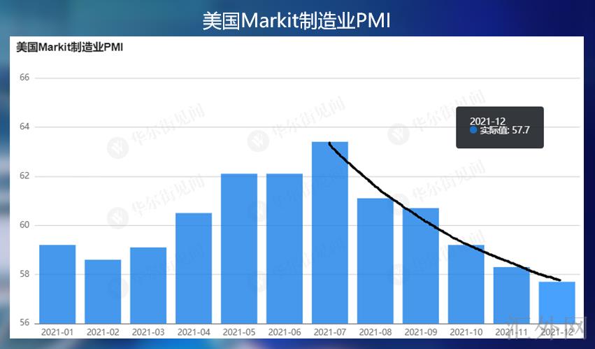 尽管近期报告怎么发布都没能影响黄金,但我一直都说,基本分析不变的情形下才可对自己做的方向造成信心,所以报告再没震荡也依旧要预测,今天要发布的是美国12月ISM制造业PMI,昨天Markit制造业PMI终值发布,报告表现和预计相同,看上去还不错,毕竟是处在荣枯线上方的,但是打开报告图表你就会发现,这已经是报告接连第5个月的回调,每次回调一点,但趋势就是朝下的,而且,这也是2021年迄今的最差表现。