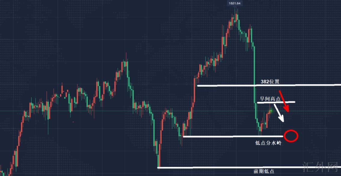 但需求注意,上一日下挫,早间回弹,后面买跌,一定是关注欧盘:看欧盘是否连阳破底。欧盘的强弱性,而在选择位置层面,着重看三个点:一是凌晨回弹修正的高位,受于是垂直下挫,所以这个点看不足。其次小时线大阴线顶部,第三,昨日下挫回弹382名置,在1809.5一线。