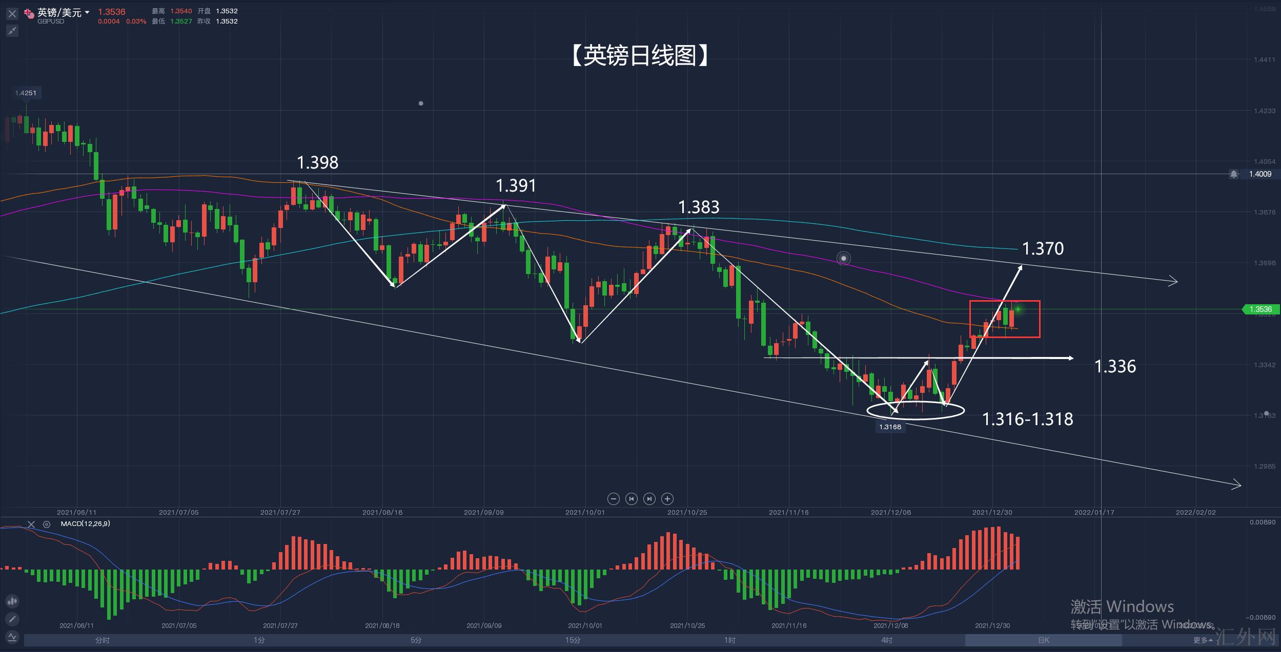 基本分析美元的上涨趋势并没有给英镑导致阻力,而且英镑差不多是忽视了美联储鹰派所导致的有好处空头,英中央银行在2022年的加息规划,更深一步支撑英镑,所以短时间内的趋势上任然倾向于买方一方。