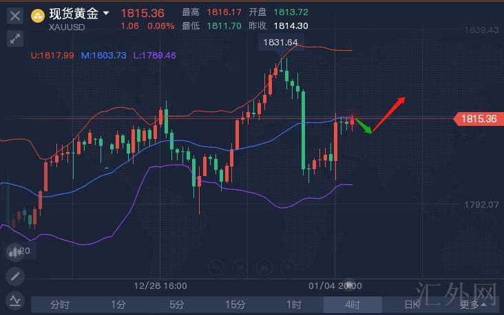 星期三(1月5号)亚盘时间,黄金现货企稳于1814左右。星期二(1月4号)黄金价格适当回弹,收回了星期一的部分失地,由于美国流行病受染人数的大涨以及美国经济报告的乏力,但美联储加息的预计仍使黄金价格遇阻。日间着重关注美国APD就业人数及美联储货币政策会议纪要。
