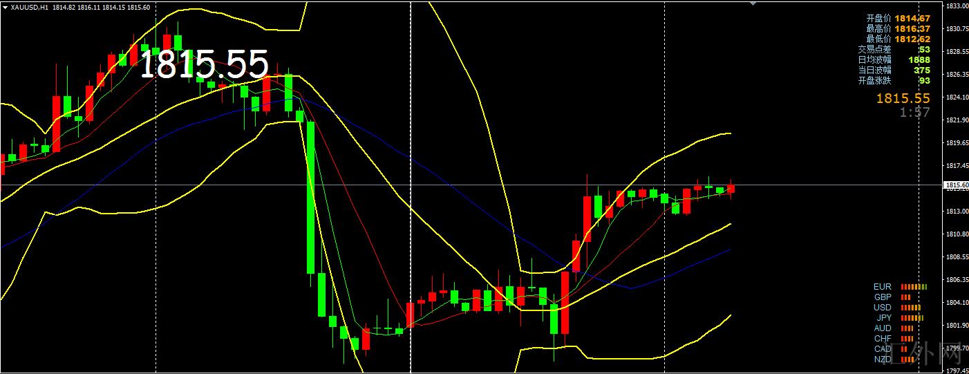 昨天黄金价格符合预计,价格先驱靠差不多1798一线后开放上涨,最高到达劲线处1816.5后开放修正,但修正的区域并没有迈出多少,最低到了1811一线,收盘以一根小阳线报收盘在1814.6.