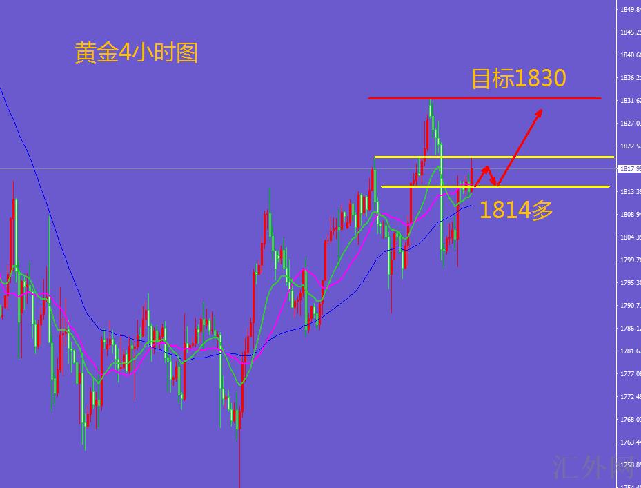 从目前盘面来说,金子欧盘涨到1820压力位,诚然压力导致临时的,ADP必将又一次推涨一次,上方看1830-1834,4小时大阳线竖起,大胆进场多单,任何点位进场均为数钞票,底部已经立住中轨,势必要再攀高峰,一起期望买方美盘暴发!
