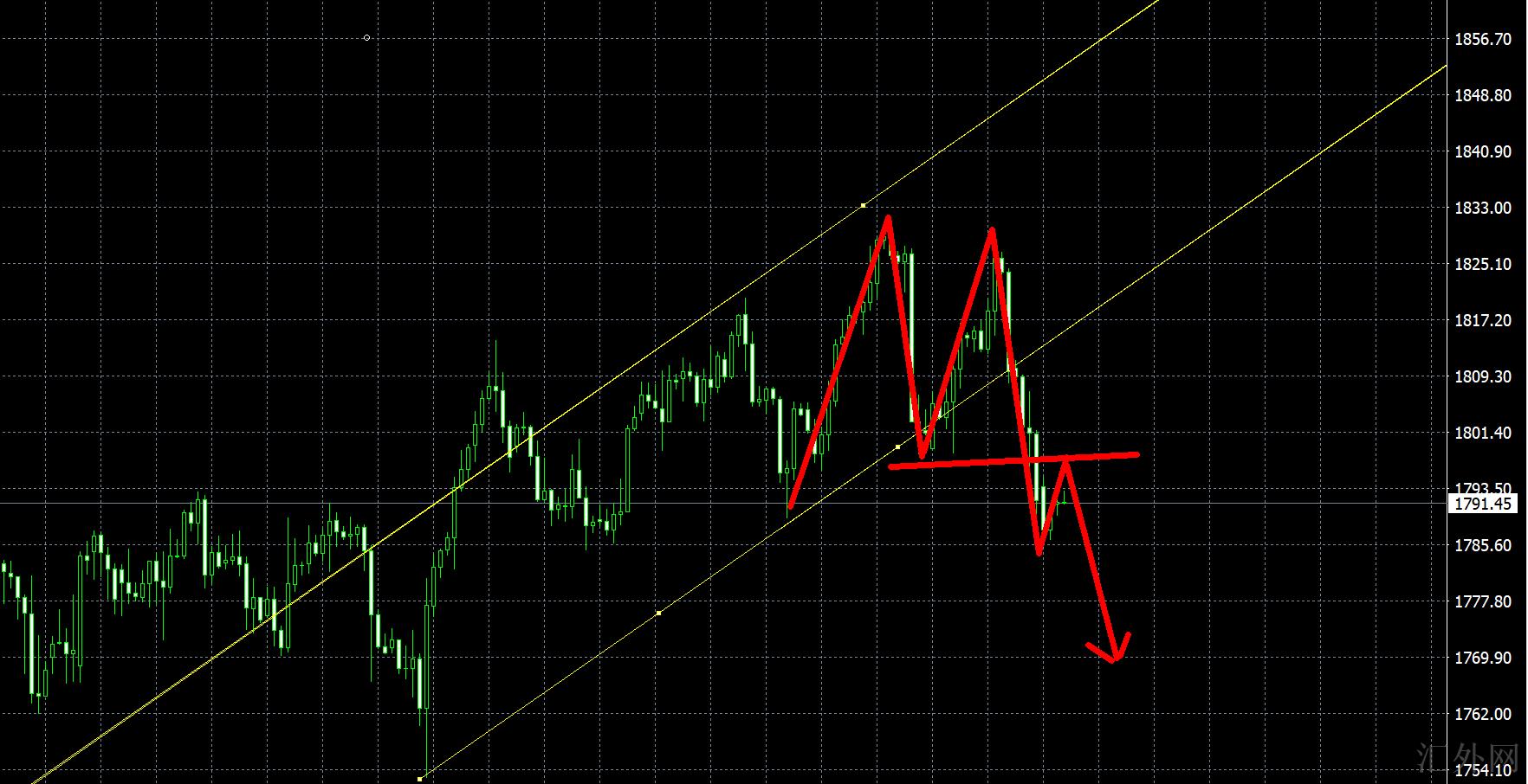 今日黄金1796下方弱势下挫的话,以下可以看1784-1772-1766 其中1766 67是昨晚说的超跌区域,昨天由于小级别走了一个小双底 所以震荡了。高点1806一带依旧是颈线阻力带。刷新 依旧可以空 该种情形就是走震荡。