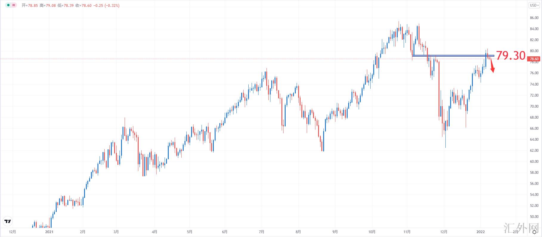 【策略逻辑】:当前市场卖方流向,推荐投资人可斟酌注意79.30左右买跌,止损80.50附近,止盈77.00附近。