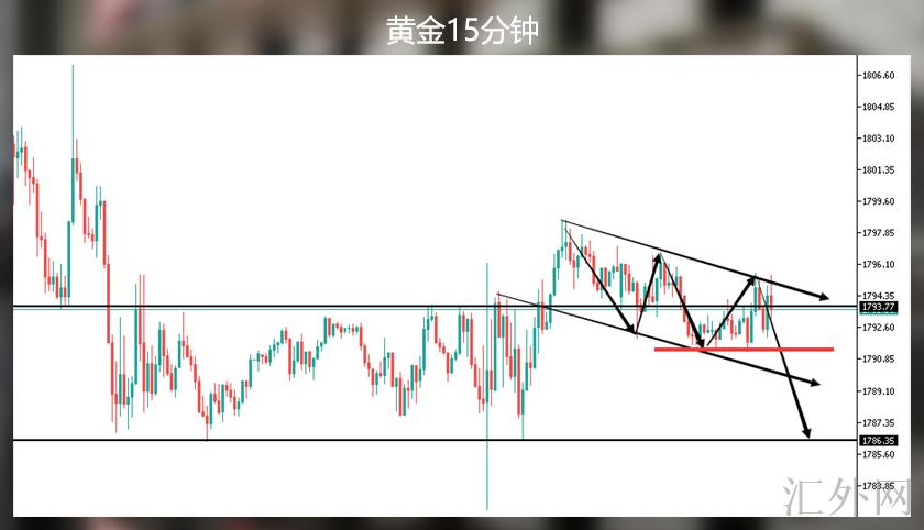 我给你们打个比方,注意看我展示的30分钟图表,就黄金早上到当下的震荡来说,它已经位于非农就业数据后半夜打击高位后的回调结构当中了,即使这个结构内的区域程度并没有大,但1790点已经形成这个通道的第二回踩低位,我相信还将有很多的短时间交易选手会试图看多,可我是没什么兴趣的,由于前边第一低位就在93,这里还将对短时间黄金价格造成适当的短频抑制,就算冲上去,顶点高点96任然也能作为反跌信号来说,所以我更看好于短时间内93看空,也就是所谓的现价,但不要把加仓位置放在96,太近了根本没必要,倒可以为了防止行情过量冲顶做一下前高98加仓的打算,总来说之就是开局直接看空。