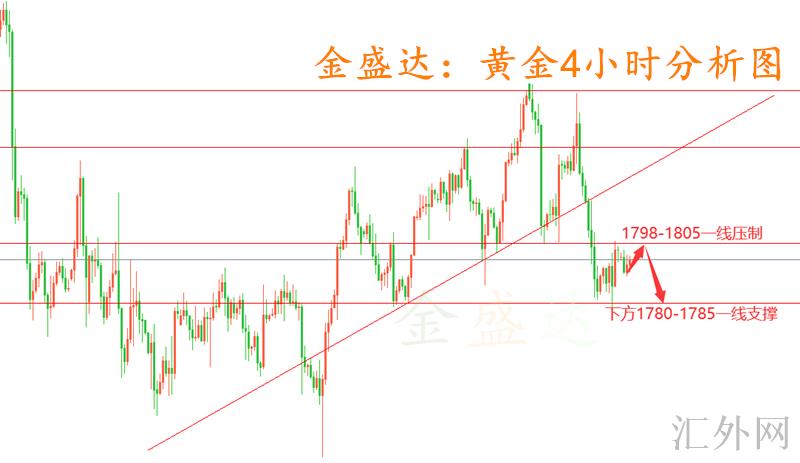 从4小时线来说,短线1785一线上临时有持稳止跌意图,所以在此之上可以试图先多,但毕竟属于逆势单,假使核心位置失守,那么临盘以交易系统看能否持续跟空下看,或者等充分修正后面以合适高点临盘择机在空!综合来说:黄金当前操作上金盛达推荐回弹布局空单为主,上方注意1798-1805一线压力,以下注意1785-1780一线支撑。当前操作上具体以金盛达本人实时给出策略为准!手里有持仓的朋友可以及时与我沟通交流,金盛达为你供应许多操作方案!