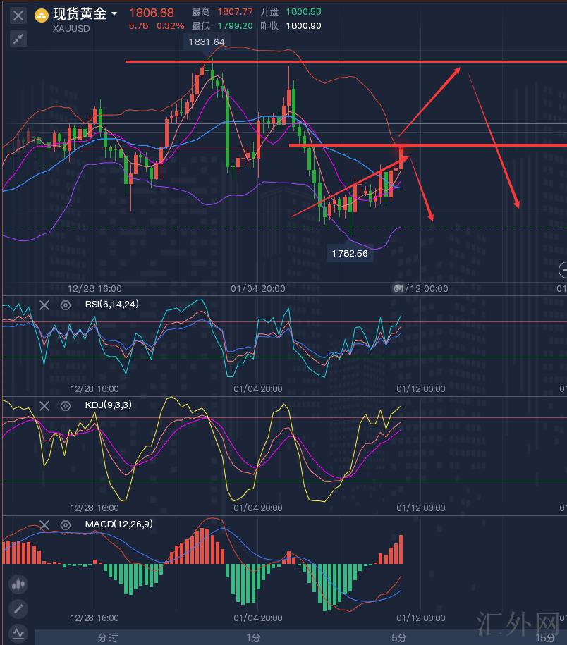 黄金策略:激进派1807左右买跌,稳健者1830左右买跌,统一止损4个点,计划看1790!