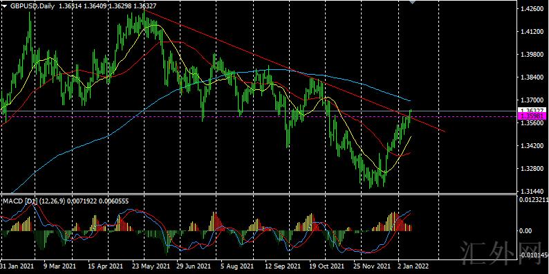 英镑星期二保持上升行情,而且又一次立稳1.3600关键点位,创下去年11月4号迄今高点。技术分析上,尽管美元指数一直保持震荡,但英镑已经接连第三周上升,迈出显著方向。日K线向上瞧,英镑击穿1.3370,标志着短时间筑底完成。但后面击穿1.36关键点位而且击穿下滑趋势线(去年6月1号迄今下滑趋势),才代表着英镑半年多的下挫行情终结,显现真正反转行情。所以在非美货币中,目前英镑是方向较为明朗的,适合买涨的品种。即便美元指数没有向朝下击穿位,英镑后市也大约率持续上涨,而美元若突破,将令增速英镑上涨。