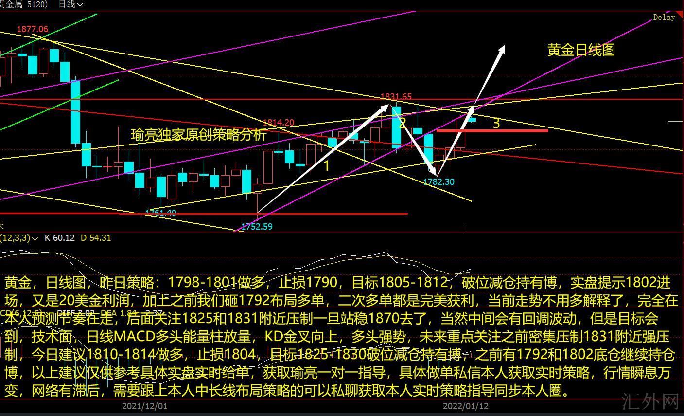 黄金,日K图,昨日策略:1798-1801买涨,止损1790,计划1805-1812,突破减仓持有博,实盘提示1802进场,又是20美金利润,加之以前我们砸1792布局多单,二次多单均为完美获利,目前行情不用多解释了,完全在本人预期节奏在走,后面注意1825和1831左右抑制一旦立住1870去了,诚然中间会有回踩震荡,但是计划会到,技术分析,日K线MACD买方能量柱放量,KD金叉往上,买方强劲,将来着重关注以前密集抑制1831左右强抑制,今日推荐1810-1814买涨,止损1804,计划1825-1830突破减仓持有博,以前有1792和1802底仓持续持仓博,以上推荐仅供参考具体实盘实时给单,获取瑜亮一对一指导,具体做单私信本人获取实时策略,行情瞬息万变,网络有落后,需求跟上本人中长线布局策略的可以私聊获取本人实时策略指导同步本人圈。
