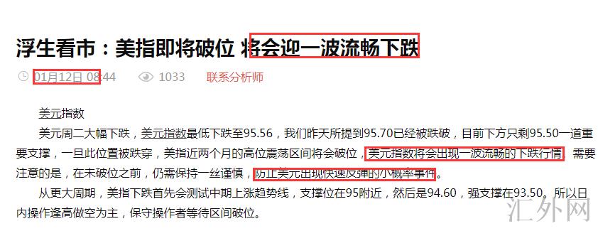 美元指数星期三按计划突破,迈出一次迅速下挫行情。从具体行情看,美指昨日亚盘跌向95.56后,显现了一次回弹,随后才在夜里显现了突破。如此的行情差不多在我们的预判当中,而且还特别警示防止显现迅速回弹。