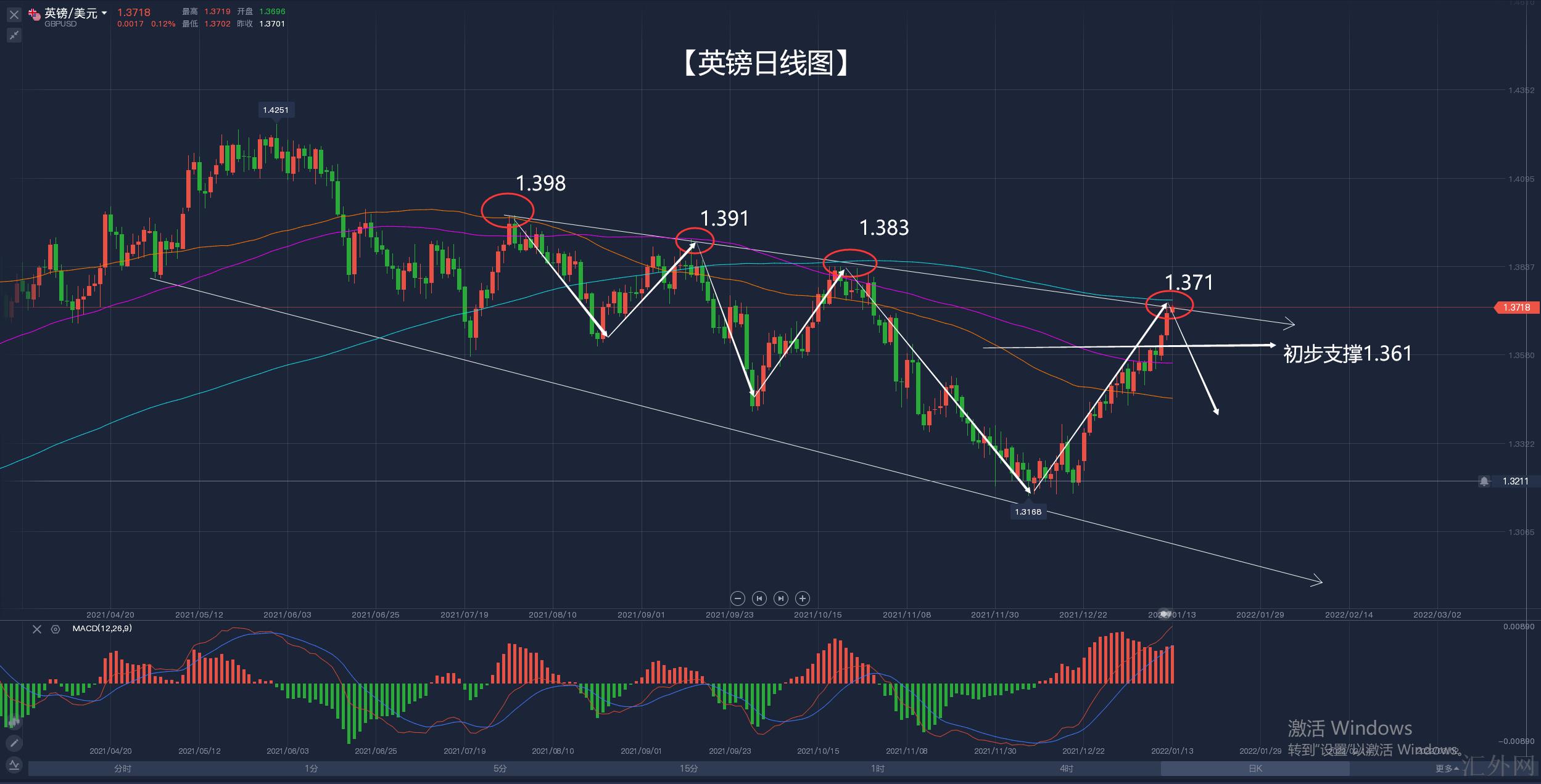 中期交易,1.370先入场,临时不斟酌短线出,头寸别太大,做好英镑高点修整的预案,防守临时放置1.379,计划点待定,等跌穿1.361再谈。