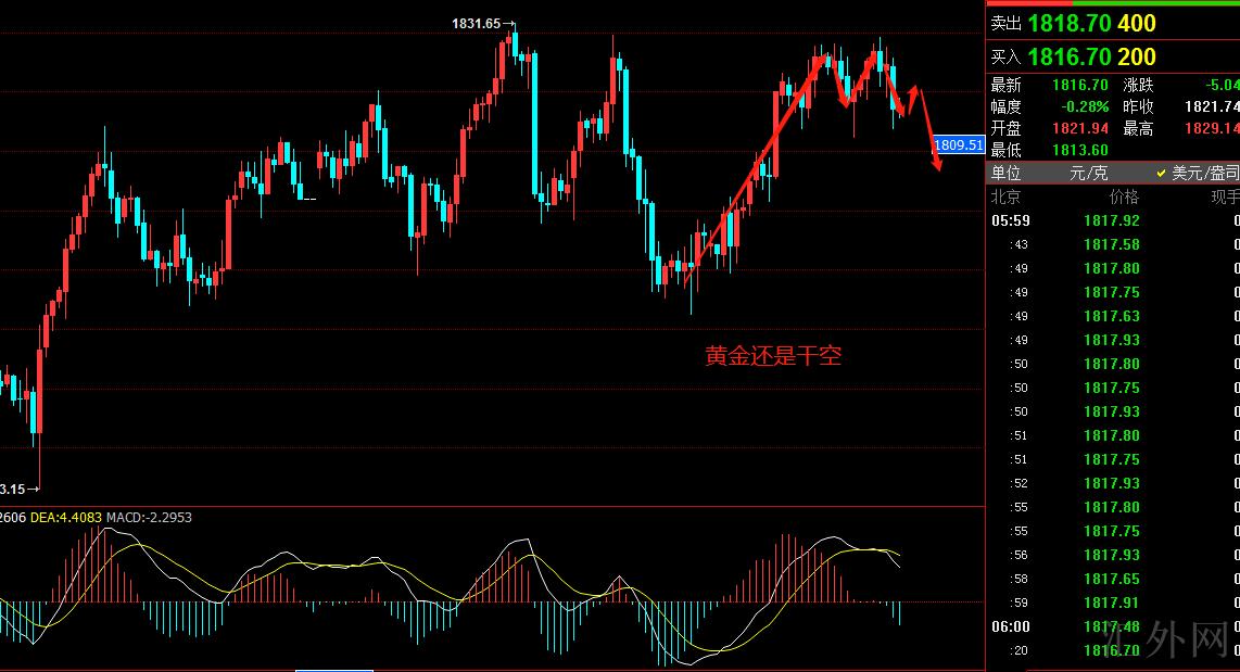 在上周周阴的情形之下,这周黄金上演先涨后跌的趋势,周这周周线收阳,卖方趋势并没有是想象当中那么强,多空焦灼,下周黄金大趋势存在扑朔迷离之情,从4小时图阿里卡,黄金多次下挫到1815左右,但是未跌穿黄金,既然黄金又一次下挫下来,表明顶部有效,短时间黄金看空头,下周周初黄金以高空为主,欧盘或者美盘黄金肯定有趋势警示,到时候启昭会第一时间给到大家更为精准的趋势和点位布局。