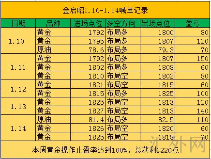这周原油黄金总的操作堪称完美,黄金1792.1795.1802.1810.1815一路低多到1825,后面1825.1827全天极力高空,黄金分别大赚止盈,这周原油黄金的操作止盈100%,总获利1220点,虽单子不是不少,但是精准率很高,假使你做的不理想,可以找启昭聊一聊,到当下为止,实盘客户全部盈利、