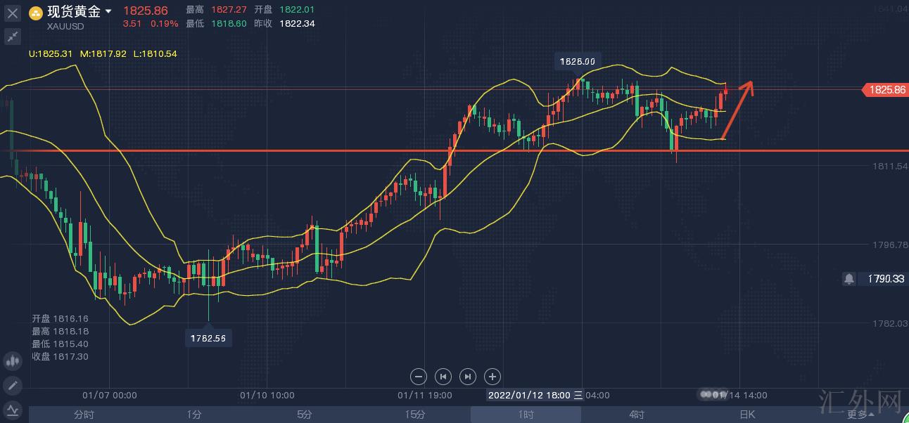 昨日,黄金价格适当下挫,在最新经济报告令通货膨胀预计有所缓和后面,市场对黄金获利吐回,就在此时,美联储官员广泛支持三月加息,这对于黄金买方来看,并没有是什么好消息,然而,美元与美指走跌支撑黄金价格从低点大幅回弹,地缘忧虑也提升黄金的吸引力。受于冠状流行病肆虐,美国首次申请失业救济人数在1月的第一周增至八周迄今最高水平,但仍维持在同快速缩紧的劳工市场统一的水准。美联储加息预计的提早消化令美元指数处在被动局势,美元的颓势疑似仍未终结,黄金价格买方想要有所表现,需着重关注上方1830一线的击穿情形。