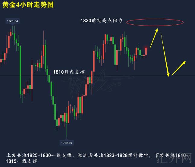 回弹1825-1830左右买跌,止损5美金,计划看1810-1815左右;激进派依托1823-1828左右进场;
