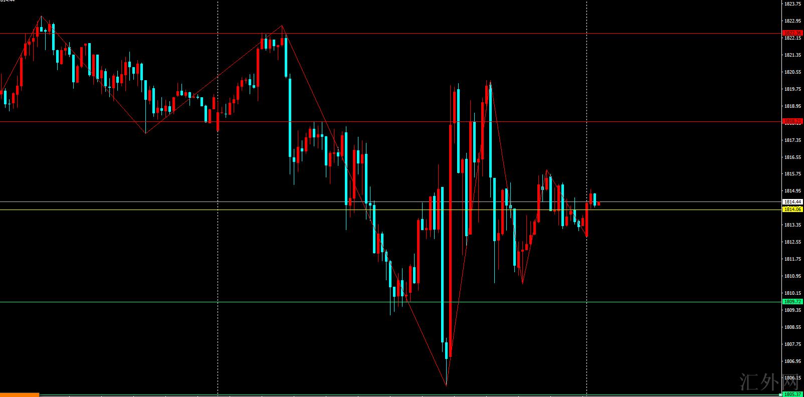着重注意1814这个位置的持稳或朝下击穿情形,一旦朝下击穿黄金持续试探1810/1805,