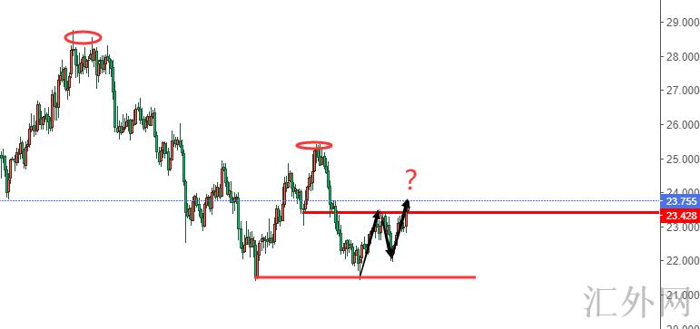 这次回弹其实已经不是首次了,第一次是在双底位置21美元左右开始的,并没有是由于有什么外界有助于刺激,等于纯技术调动,而后边的二段推涨,很大程度上均为黄金产生的,这个原因我就然而多解释了吧?回想一下最近黄金的纠结震荡程度就知道,昨天的突发做多盘假使做对比,白银更胜一筹,就算后边黄金压了下来,但白银依旧位于高点震荡。