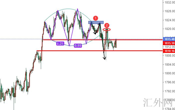 你们应当都记得这张三助推结构图表,以前我就是用这个技术点给你们提议弧形末端看空信号的,最终尽管第一波下挫只有6美金,还又一次回弹到了前高,然而最终依旧刷新了20美金的降幅,尴尬的是还没有突破1800,假使我们是短线看空的话,也能算作是一笔成功的交易了。