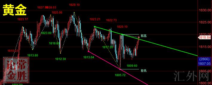 夜里交易参考总体简单,黄金现货欧元兑美元盘注意1818一线阻力介入空单。防守1823即可。若击穿1823则回撤1816左右再次介入多单看回弹。若1818抑制先看1811破未看1807/1805,当黄金价格到达1803-1800一线仍推荐介入一次多单防守1798即可。