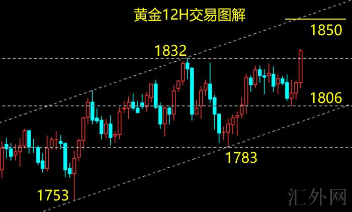 黄金,此次价格自月初高点1832下探1782后二次冲顶,上星期五在1829遇阻回撤,文中强调这周初会先回踩证实1806-1800区间支撑,周尾蓄力后又一次上探1829-1832高点,突破则打开至日线图上涨通道上缘1850空间;