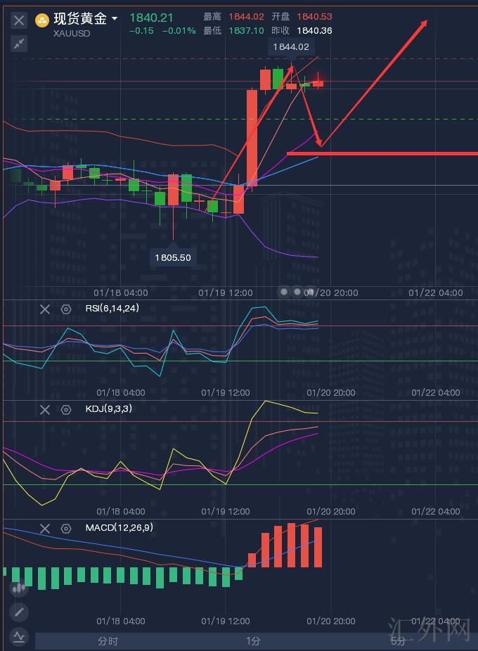 黄金昨日击穿1830抑制,日K线大阳而且动员均线形成买方排列,各个周期均为强劲看多表现,而击穿口1830左右就是首个支撑,所以今天黄金短线操作上肯定是以买涨为主,而周线布林带走平,上方则关注周线上缘1858左右阻力以及前高1877,关铭不看空此两处压力的回调,只要有一个迈出回调,将有不小的区域,短时间四小时层面来说,黄金高点震荡,直接买涨的话一旦回调容易止损,所以依旧推荐耐心等候回调买涨!