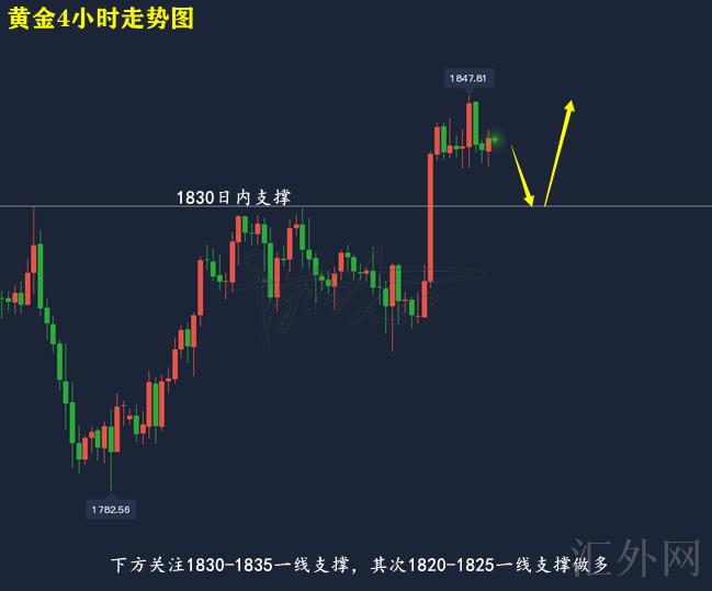 1830-1835左右买涨,止损5美金,计划看1845-1850左右;击穿则依托1820-1825左右进场;