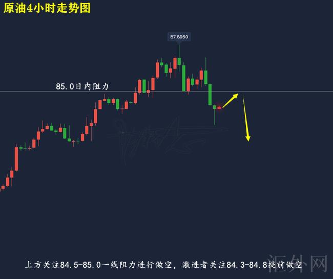 84.5-85.0左右买跌,止损0.5美金,计划看83.0-83.5左右;