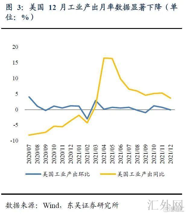 A:我们觉得:(1)美国零售端显现下挫。2022年1月14号,美国发布了2021年12月零售销售月率报告,跌向-1.9%,远差于前值0.2%,创下了从2021年2月迄今新低,并终结了接连4个月的强势上涨;首要影响要素是伴随Omicron变种的增速蔓延以及通货膨胀水平居高不下,商家顾虑到发货推迟等困难,多部分节假日购物提早到了前几个月,而且消费者面对价格上升和一部分流行产品匮乏的困难;(2)供给端同样显现萎缩。美国发布了2021年12月工业产出月率报告,跌向-0.1%,市场预计为0.3%,且远差于前置值0.7%;其中制造业生产下滑了0.3%,汽车和零部件下滑了1.3%,不包含汽车行业,工业产出下滑0.2%,耐用品和非耐用品的降幅也大差不差相同;(3)经济短时间预计仍不稳。市场最近显现明显回撤,美国股市、美债双杀,美债收益率抬升速率过快致使美国股市—尤其高估值科技成长股—遇阻。我们觉得短时间起码到2022年3月前,操作上依然需要以防御为主,不更改2022年风格恢复(第二年)的基线分析。