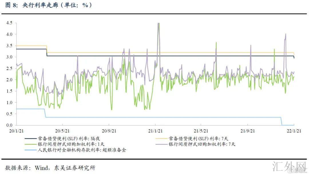 这周(2022.1.17-2022.1.23,下同)中央银行宽松政策频频,SLF利率在MLF和OMO利率调降后也显现下探,如何看待其影响:(1)通过梳理2017年迄今SLF利率的变动情形,我们可以发现其一般和MLF和OMO利率的改变具有联动性,三者的变动日期相近且改变程度相同。所以在2022年1月17号MLF和OMO利率向下调整10个基点的基础上,SLF利率同样调降10个基点在情理当中。(2)SLF利率作为利率走廊的上限,其向下调整可以压缩利率走廊的规模,更好地控制市场利率和政策利率之间的偏离程度。2014年3月,中央银行《货币政策新困难-环球经验和对中国的借鉴》数据中具体阐释了利率走廊构建的路线图,其中提到利率走廊的上限为常备借贷机制(SLF)的利率,下限为超标存款准备金的利率。本轮向下调整SLF利率压低了利率走廊的上限,可以有效引导市场利率中枢的下探,进而更深一步减弱融资成本。