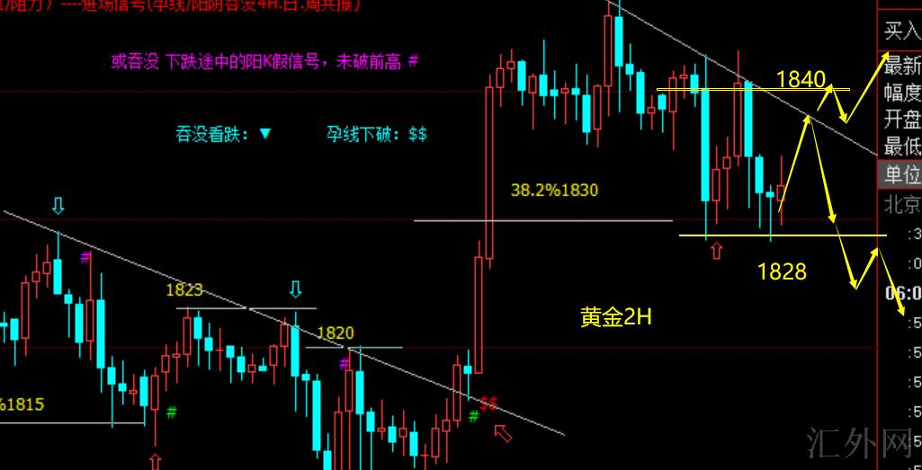 特别注意1828-30左右支撑,星期五截至收盘K线实体都在上方运行,这里抵抗依旧很强,突破后在跟空。