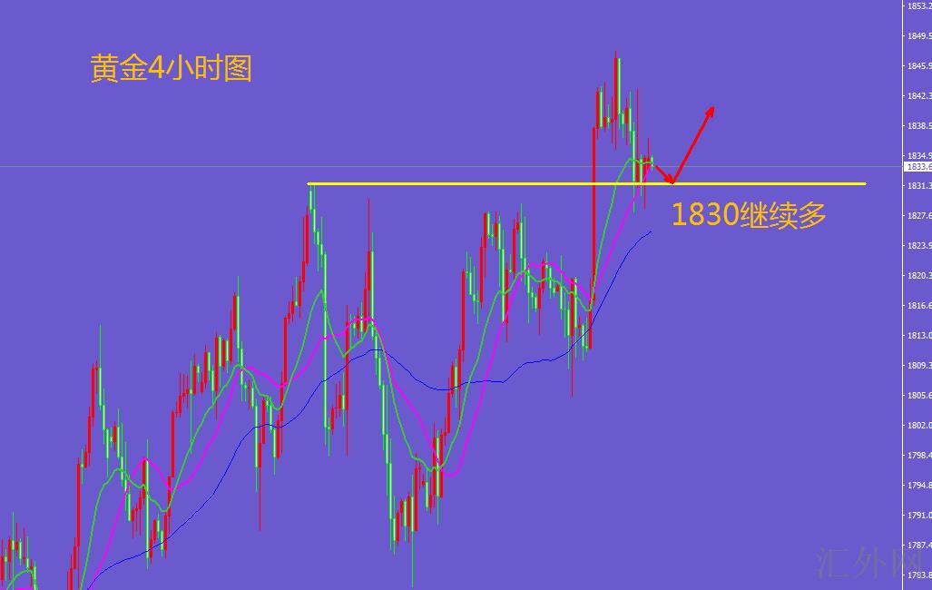 消息面美国国务院:受于与乌克兰边境的连续紧俏局势,推荐不要前往俄罗斯,据纽约时报:美总统拜登斟酌向东欧和波罗的海部署军队,盛世古董,乱世黄金,战争有好处多头黄金上升!从4小时图来说,金子位于中轨上方,中轨强力支撑,1830上方坚定看涨,尽管虚破1830,但是买方立马收回失地,显著双针摸底形态,是买方的信号,跟随金金做一个大波段,上方计划依然是1860左右,横而不跌看涨,摸底后收阳线,强劲信号较为显著,日间应注意大阳线后的保持性。