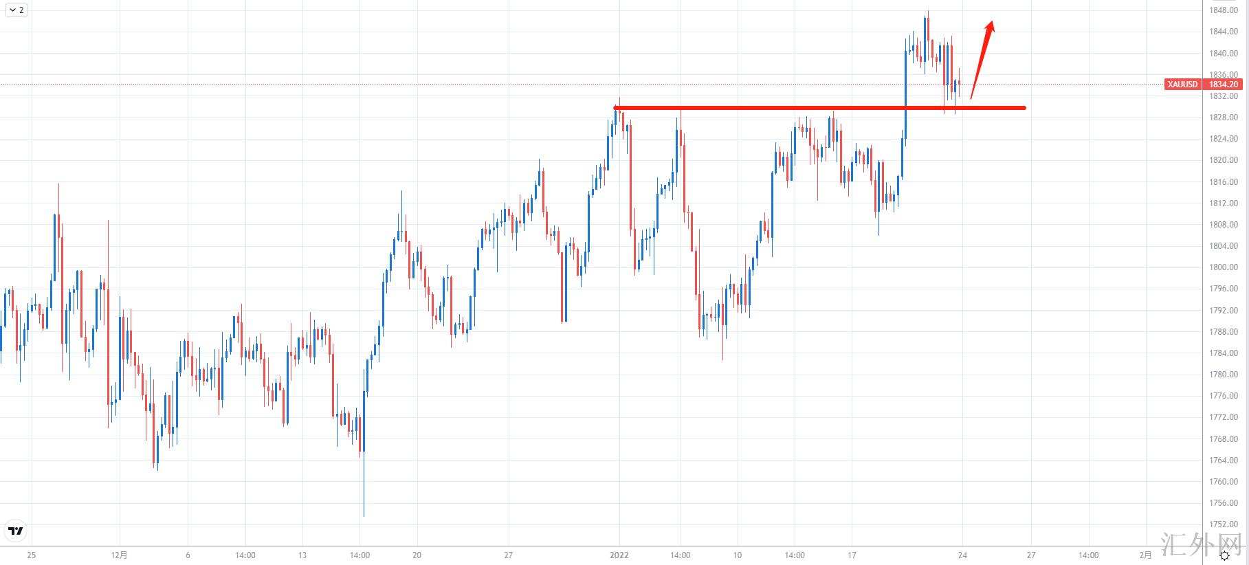 【技术点评】:H4周期表明,黄金击穿宽幅震荡区间,以下支撑攀升到1830左右,上方压力处在1850左右。