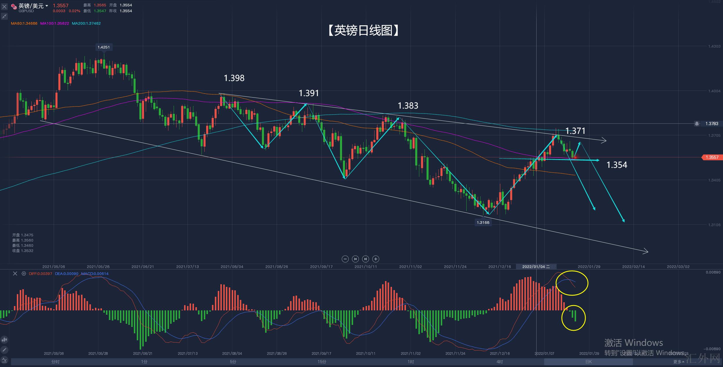 日K线来说当下的英镑结构,自从承受来从1.398-1.383的下探趋势抑制后面,英镑就很难上涨,即便震荡也不是很意愿又一次摸一下1.370,而是保持下挫,macd指标更是结成死叉,怎么看英镑均为要保持走跌的,但是1.354又给他撑了起来,要知道当初英镑击穿这个点的时机也是历经了5个交易日的试探,所以仍有更深一步回弹的需求。