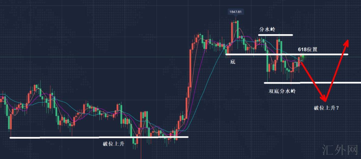 依照区间来看,欧盘一日是核心。震荡行情中,关注两点:分界线和618。假使持续看续跌震荡,618名置就需求空,1837-8一线,这是早间高位位置,诚然,下挫行情,欧盘是一定不能去1840上方的,去了40上方,最多是震荡,而且有持续击穿的风险。
