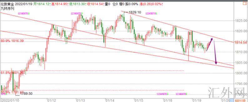 短线需求调动一下思路,即原先看1850—1830区间震荡的预计,调动为1840—1830之间震荡,且短线思路总体要看空一部分,由于欧盘时段的下挫回弹动作真实太弱。