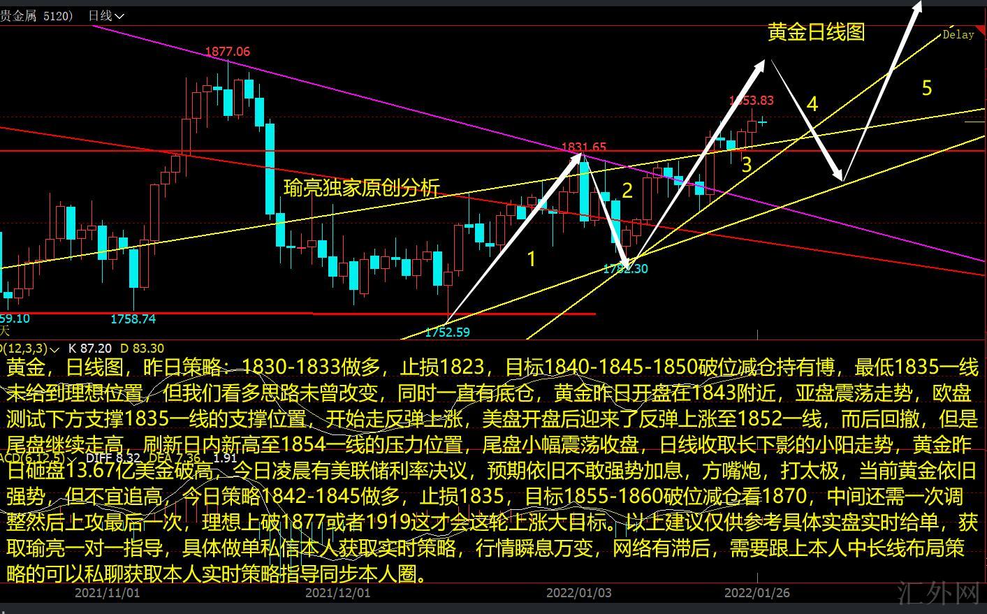 黄金,日K图,昨日策略:1830-1833买涨,止损1823,计划1840-1845-1850突破减仓持有博,最低1835一线未给到理想位置,但我们看涨思路未曾更改,同期一直有底仓,黄金昨日开盘在1843左右,早盘震荡行情,欧盘试探以下支撑1835一线的支持点置,开始走回弹上升,美盘开盘后面临了回弹上升到1852一线,而后回撤,但是收盘持续上升,创下日间高峰到1854一线的阻力位置,收盘适当震荡收盘,日K线收取长下影的小阳行情,黄金昨日砸盘13.67亿美金破高,今日凌晨有美联储利率会议,预计依旧不敢强劲加息,方嘴炮,打太极,目前黄金依旧强劲,但不宜追涨,今日策略1842-1845买涨,止损1835,计划1855-1860突破减仓看1870,中间仍需一次调动随后上探最后一次,理想往上击穿1877或者1919这才会这次上升大计划。以上推荐仅供参考具体实盘实时给单,获取瑜亮一对一指导,具体做单私信本人获取实时策略,行情瞬息万变,网络有落后,需求跟上本人中长线布局策略的可以私聊获取本人实时策略指导同步本人圈。
