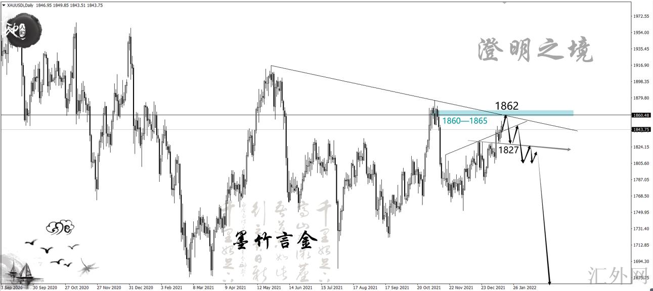 而针对现有阶段黄金卖方的转折点,我比较不看空1862,此位置是链接1916和1877所形成的下挫趋势线阻力,同样是前一波黄金下挫的起跌位置,预计将对黄金形成抑制。抛压状态就要看市场情绪的反映了,从当下到明日亚盘,我们的交易核心,只看1862的抑制情况。