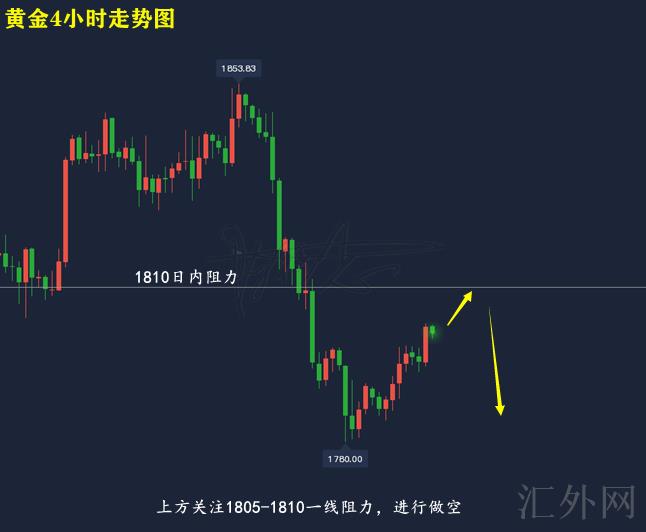 黄金技术分析来分析,日K线上,星期一黄金打破前几个交易日下跌趋势,展开适当上升,报得带下影线的中阳,日K线上,今日行情开盘持续回涨,但均线MA10日移动均线仍未打破,仍有下探机会;4小时上,星期一黄金走震荡上涨行情,迟缓上涨,并在刷新日间高点后展开回踩,目前布林带处在收口期,MA均线迈出双金叉,KDJ随机指标三线往上,到达超买,MACD指标红色量能柱连续放量,快慢线金叉往上,综合来说,即使黄金收阳,但均线以及周线抑制仍未打破,日间交易参考持续买跌,上方注意1805-1810一线压力。