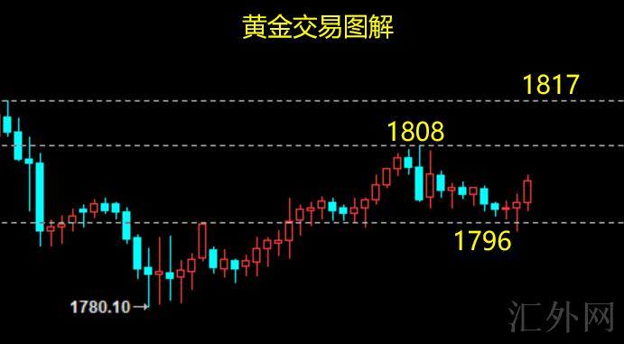 黄金,大趋势接早间分析所述,星期二价格往上刷新1780-1854连线38.2%回弹点1808遇阻回撤,日线图连阳,4H图为震荡看多结构,预计日间在回撤蓄力后仍会冲顶1808之上;