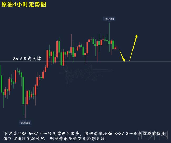 86.5-87.0左右买涨,止损0.5美金,计划看88.0-89.0左右;