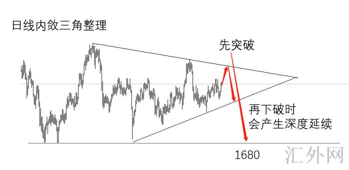 在此之前我们一直在强调黄金日K线所形成的内敛三角整理结构,依照正常的内敛结构助推,黄金价格则需跌穿上升趋势线的支持,增速溃败到1752和1720才可得到止跌的举动。诚然,短时间的修正我能理解,毕竟卡着月线换线,以如此的方式执行修复,愈加有助于后期的下挫。